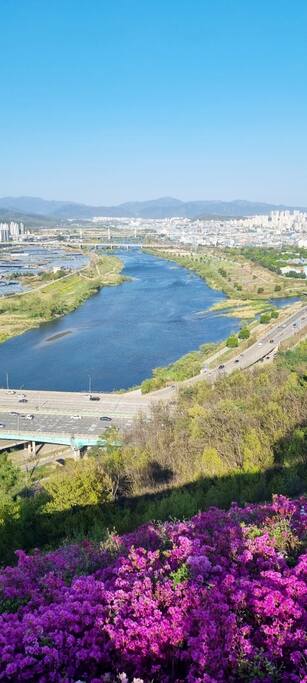 숙소 앞뒤로 와룡산과 공원이 있어 집창문을 열면 멋진 풍경이 펼쳐집니다. 집앞 가르뱅이 공원에는 어린이놀이터 운동시설이 잘 정비되어 있어서 건강한 시간을 보내기에 안성맞춤입니다 20분만 걸어올라가시면 진달래군락지, 영산홍군락지, 벚꽃터널을 만날수 있습니다. 야간에는 대구시내 멋진 야경이 한눈에 보이는 명소입니다
