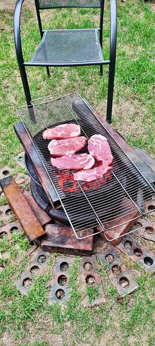 마당에서 바베큐 이용 가능합니다. 그릴 및 집기류 세팅비 20000원. 숯은 준비해오셔야 합니다.