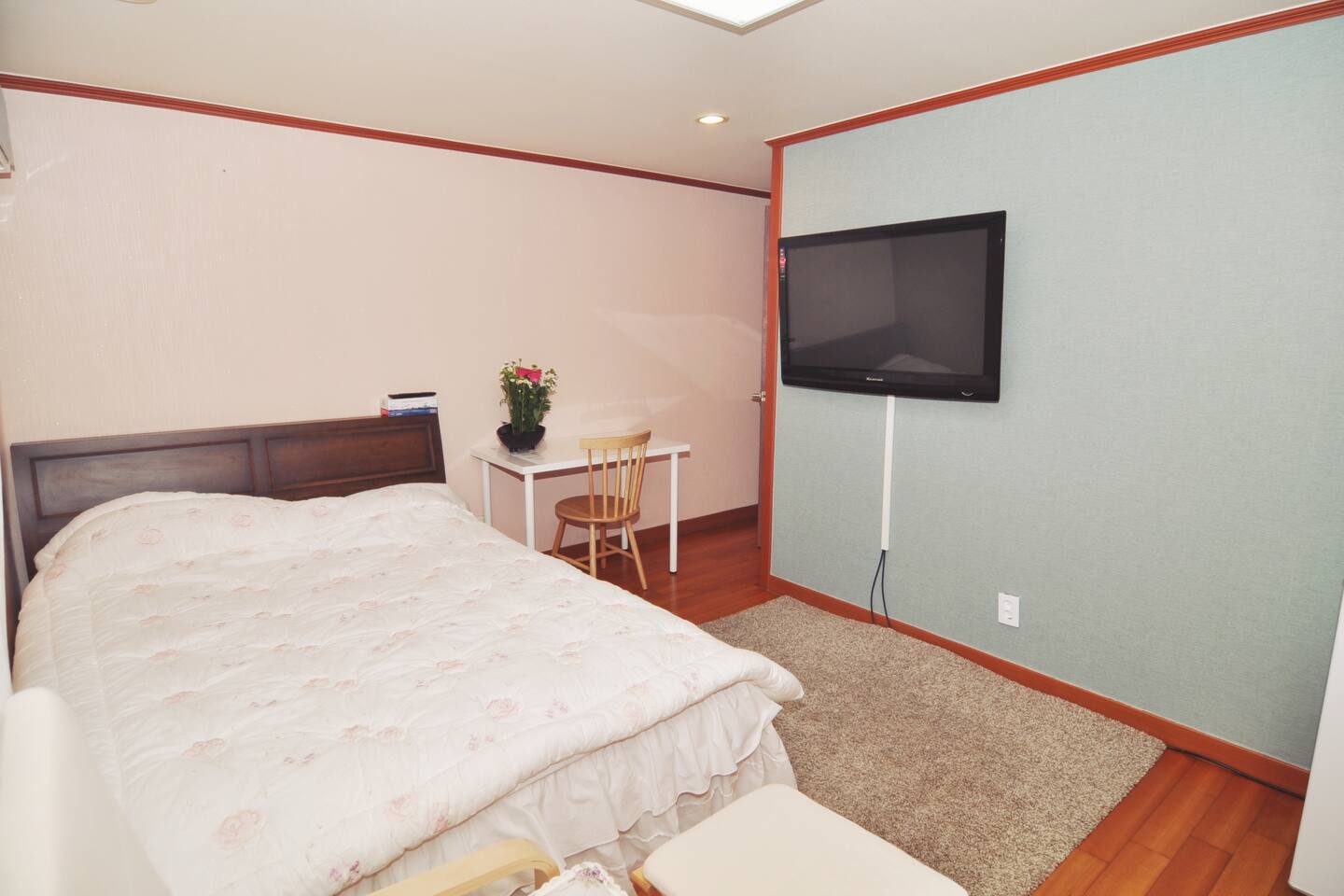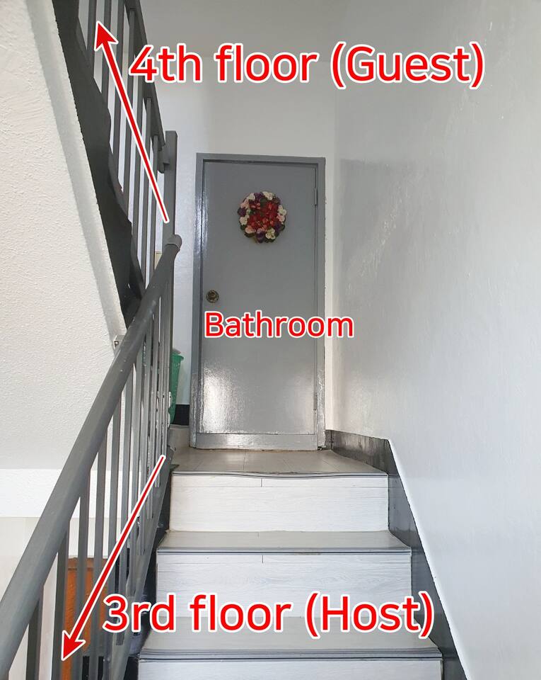 게스트는 4층 옥상을 포함한 전체층을 사용하며, 별도의 잠금장치가 있는 침대방 2개와 간이 부엌, 화장실 공간이 있습니다. 각 방에는 에어컨 설치되어 있습니다. 화장실은 3.5층에 별도로 존재하며 온수 시스템 잘 갖춰져 있습니다.