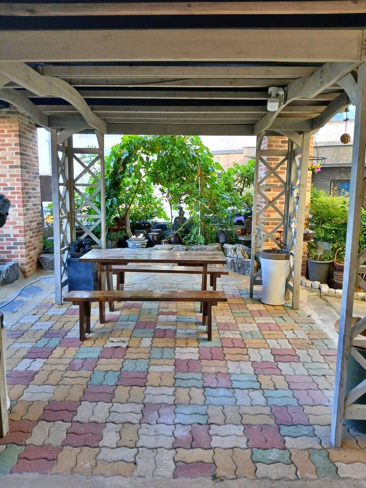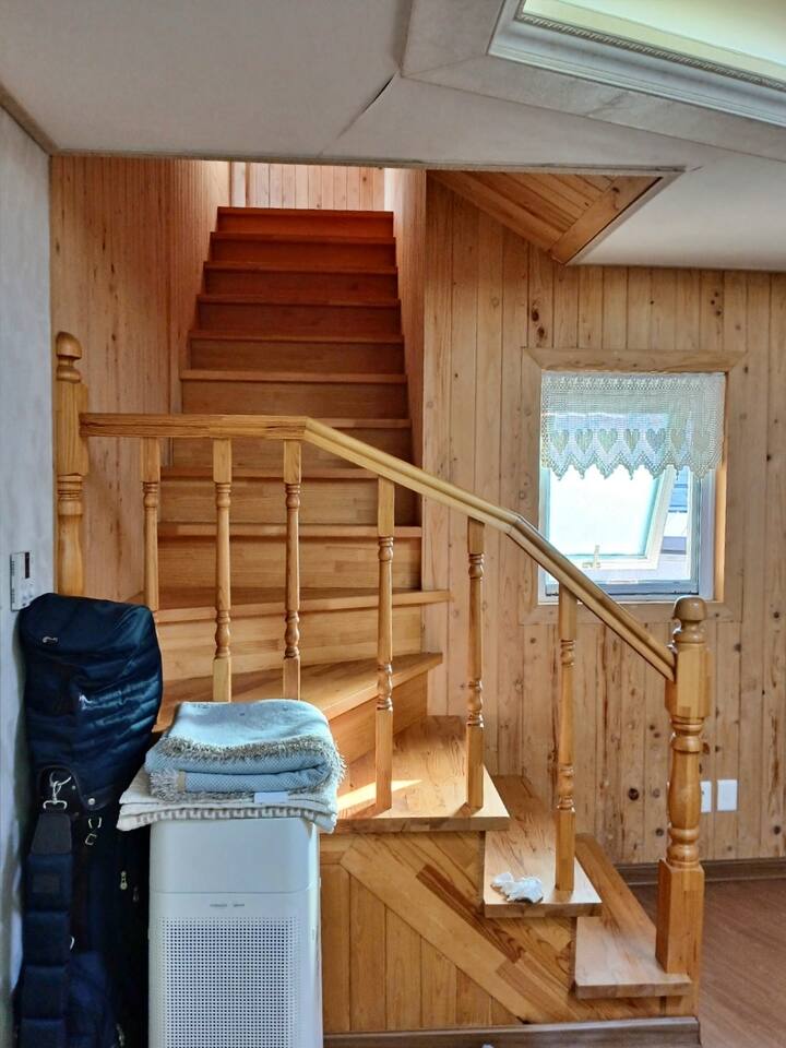 1층 주차장(2대)과 정원. 바베큐 그릴과 테이블 2층 주방, 거실, 티 테이블 (오른쪽 냉장고 게스트 전용), 화장실 3층 안방과 전용 화장실, 작은방과 전용 화장실 4층 전망대 겸 침실, 추가 2인 바닥요 + 옥상 안마의자와 널찍한 돌침대, 편안한 매트와 좋은 이불을 비치 하였으며 뜨끈하게 온돌 기능도 사용 가능합니다. 바베큐 그릴은 사용하셔도 됩니다. 숯 준비해오시고 이웃과 다음 사람을 위해 뒷정리 부탁드립니다.