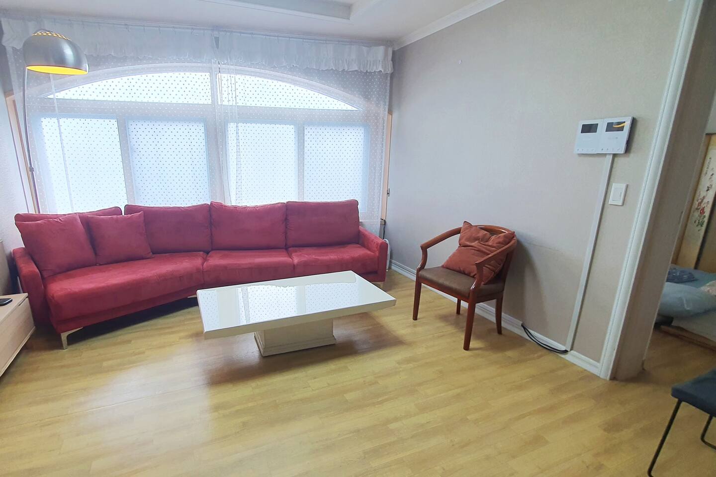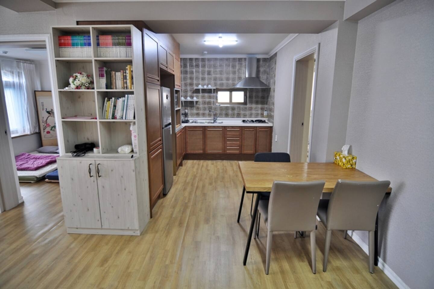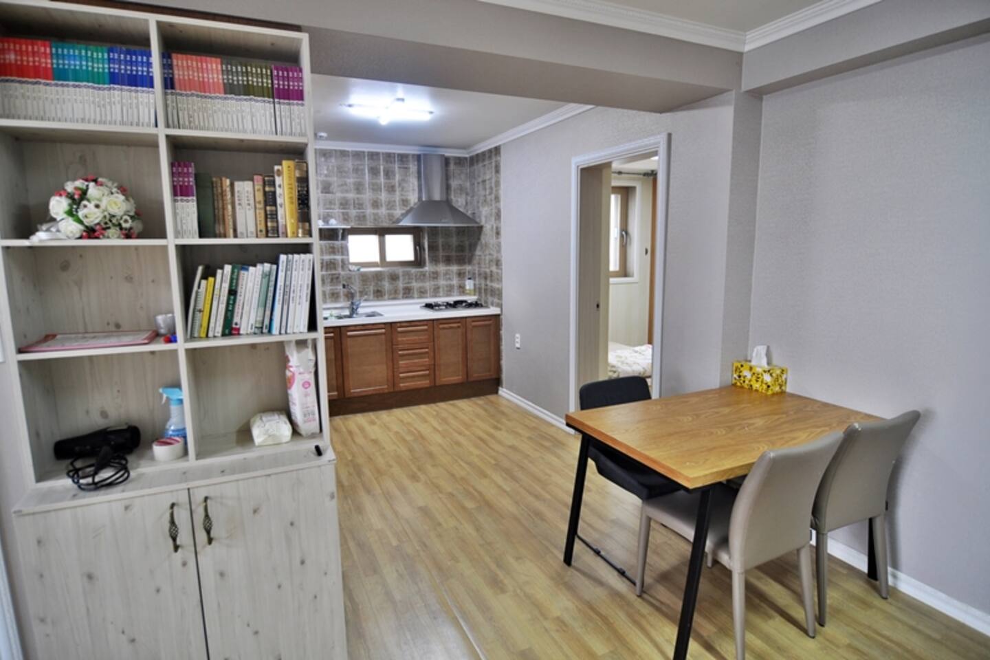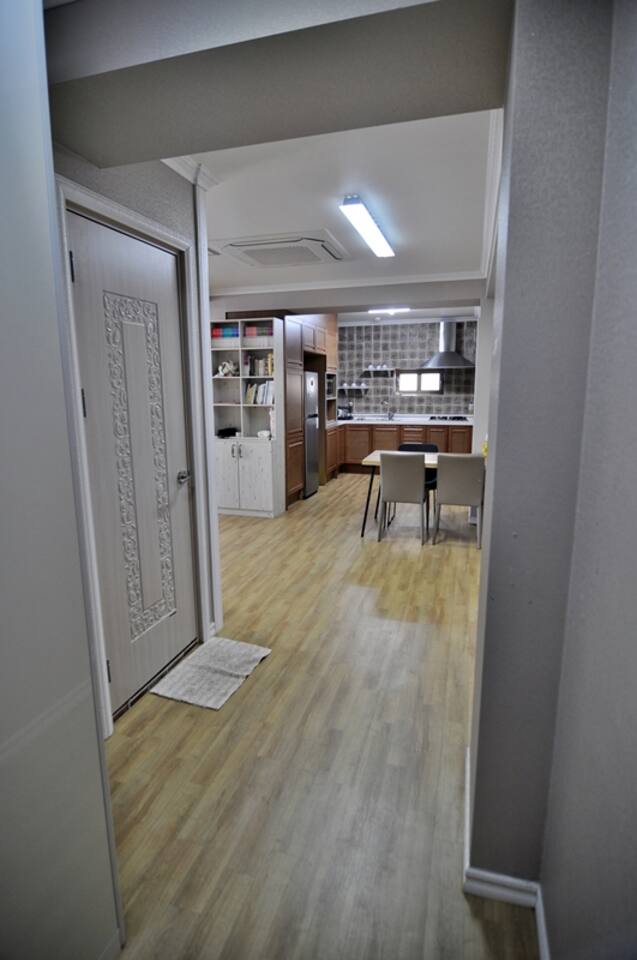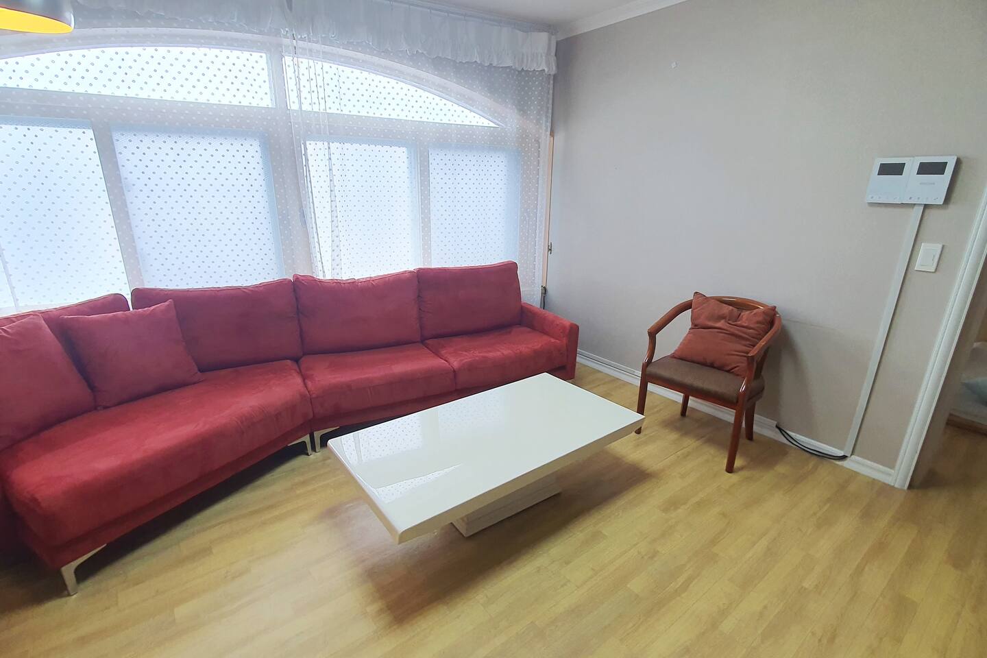 다음 게스트를 위한 배려로 숙소 내 찜,구이 요리를 금지하고 있습니다. TV는 준비하지 않았습니다. 넓고 안락한 소파에 앉아 여행지와 동반자의 매력에 집중하는데 도움이 되면 좋겠습니다. 소파 뒤쪽에는 블루투스 연결이 가능한 스피커가 있습니다.