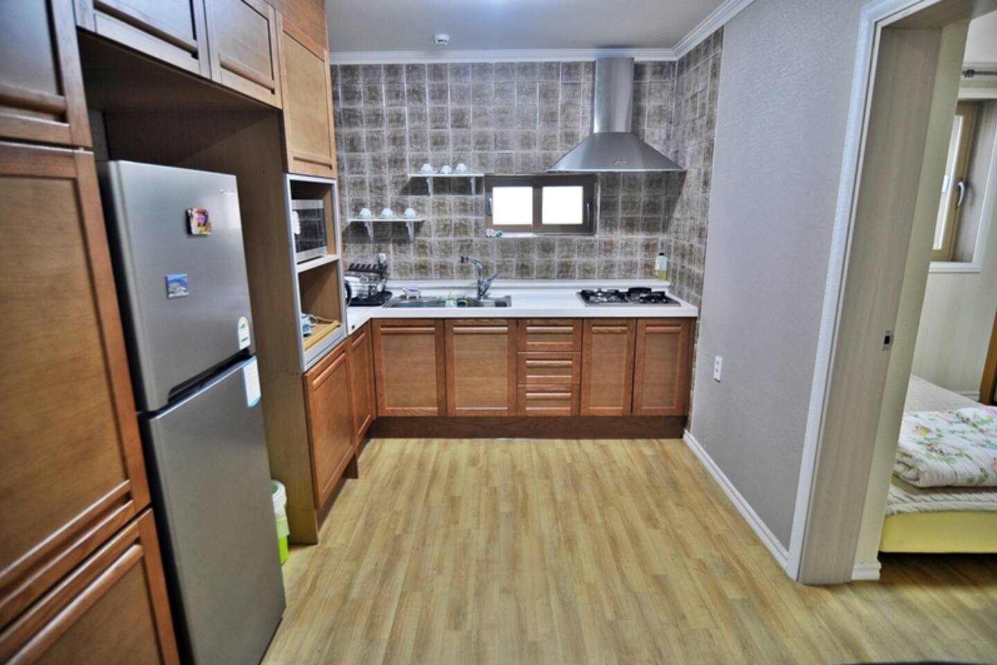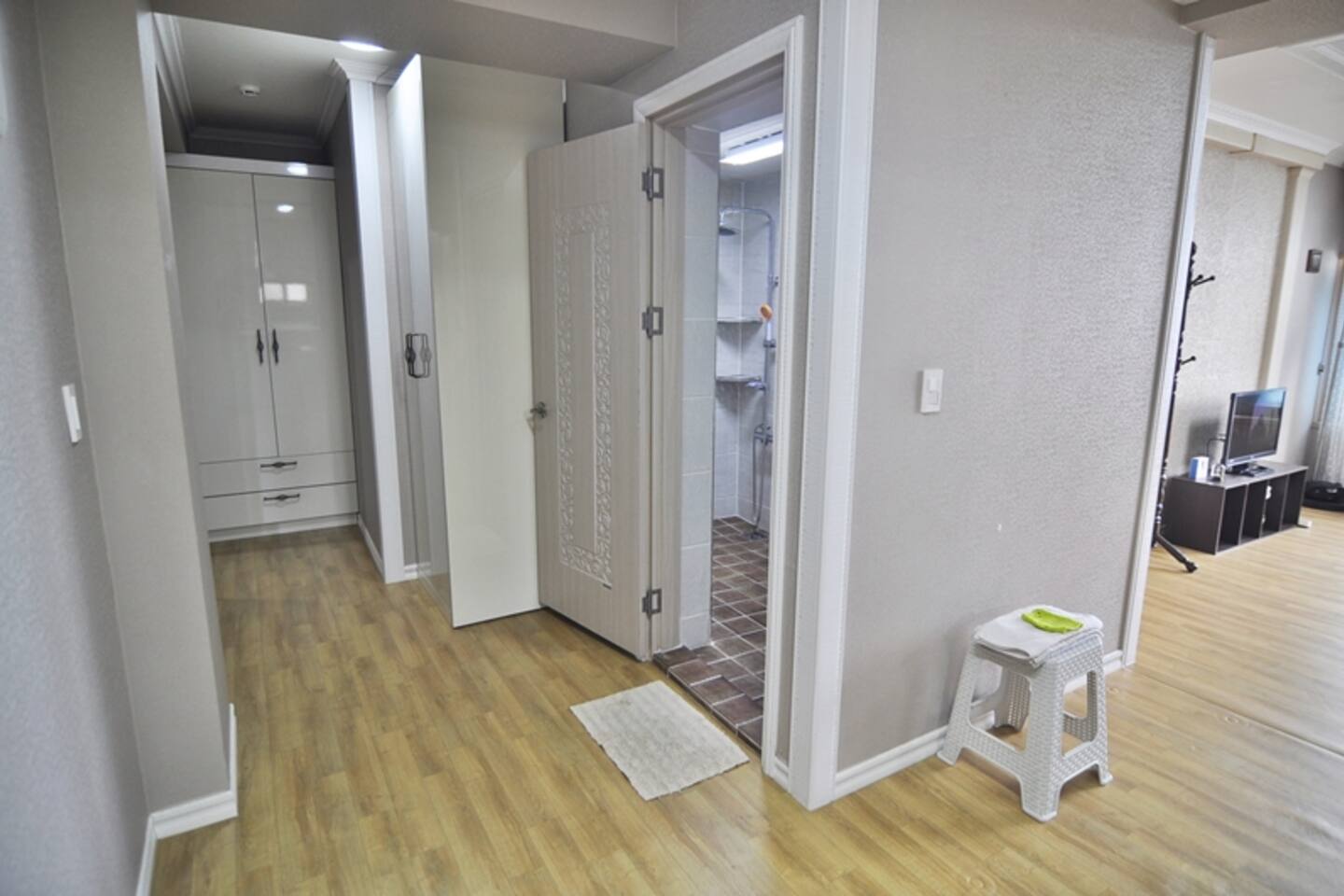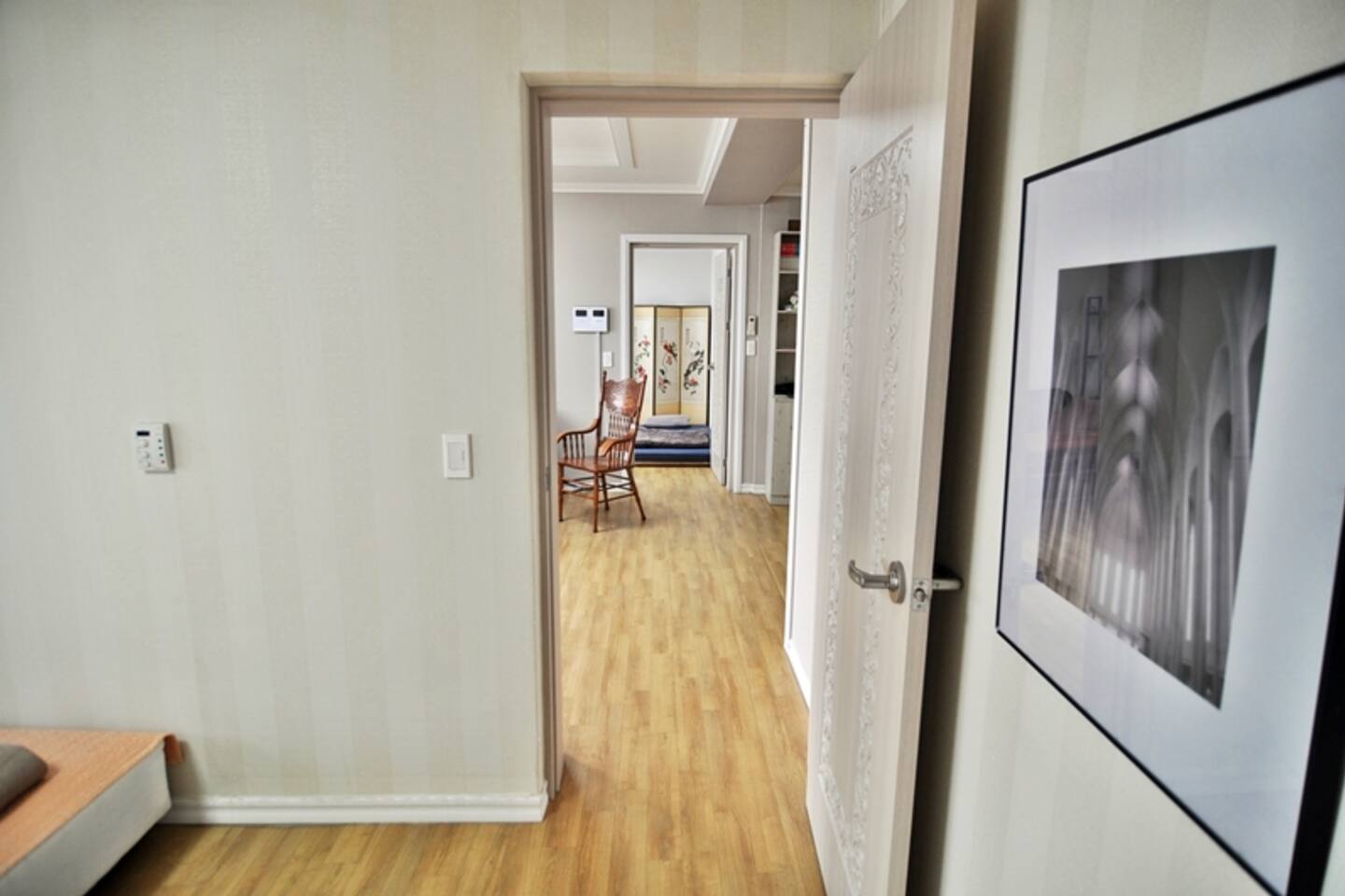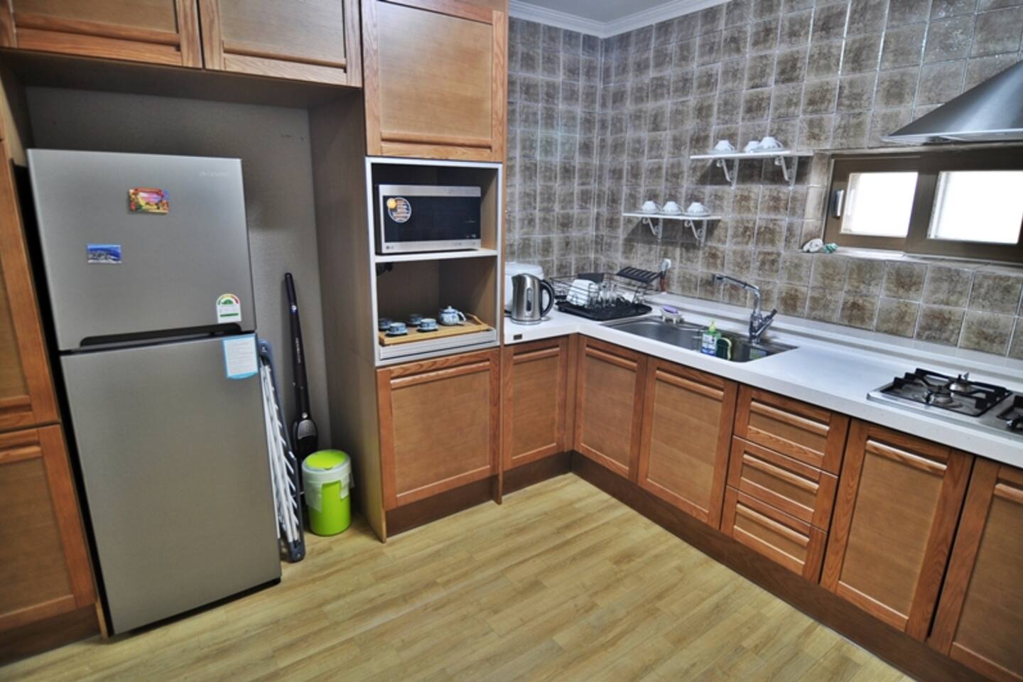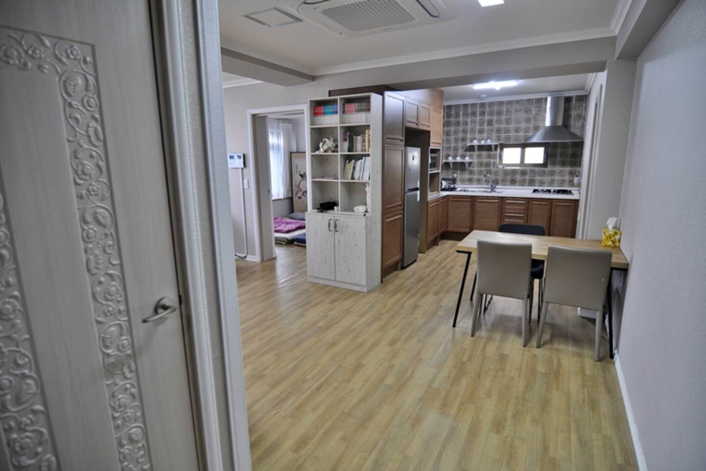 다음 게스트를 위한 배려로 숙소 내 찜,구이 요리를 금지하고 있습니다. TV는 준비하지 않았습니다. 넓고 안락한 소파에 앉아 여행지와 동반자의 매력에 집중하는데 도움이 되면 좋겠습니다. 소파 뒤쪽에는 블루투스 연결이 가능한 스피커가 있습니다.