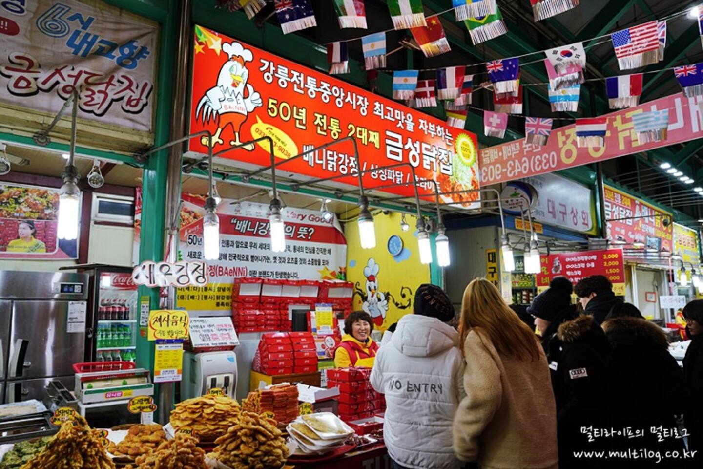 Wolhwa Street is the street set on an old railway but since the rail has been moved underground, they decided to built a park here for everyone. Gangneung Jungang Market is located next to Wolhwa Street, and it’s the main market for locals that sells fresh seafood and all kind of delicious market food. We bought a few kinds of hotteok as snacks and cold drinks to cool down the heat.
